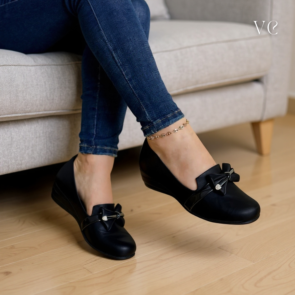 Las Baleta Corbata Votre™ son ese par que te salva el día: cómodas para caminar, pero con un look pulido que se ve caro. El moño le da el toque femenino y la punta tipo charol brillante hace que cualquier outfit se vea más arreglado al instante.